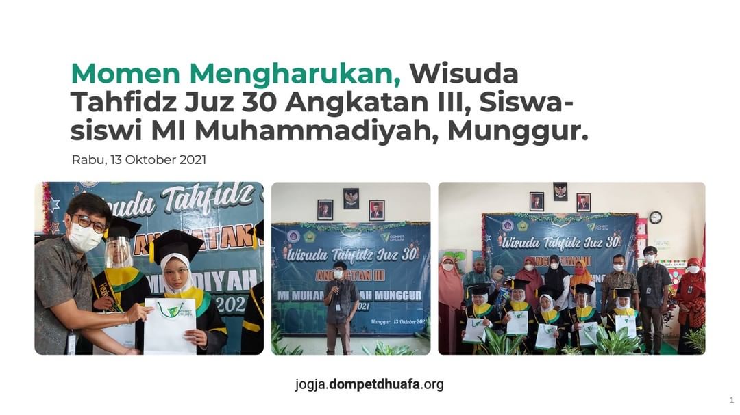Belum lama, kami menggelar wisuda untuk para santri penghafal al qur'an yang kami muat dalam instagram sebagai sebuah penghargaan kecil untuk kami sampaikan kepada Anda bahwa kelak mereka menjadi saksi kebaikan dari donasi yang Anda berikan melalui Dompet Dhuafa Yogyakarta