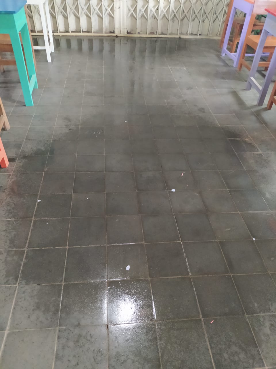 Kebocoran terjadi hampir rata di sepanjang kelas, khususnya ruang kantor , kelas 1 hingga 5. Selain ketidaknyaman dalam proses belajar, akan menjadi bahaya jika anak terpeleset dalam genangan air, belum lagi dokumen atau fasilitas penunjang pembelajaran yang kerap menjadi korbannya.